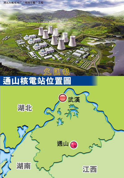 首座內陸核電站三省競建 港報稱湖北“最熱門”